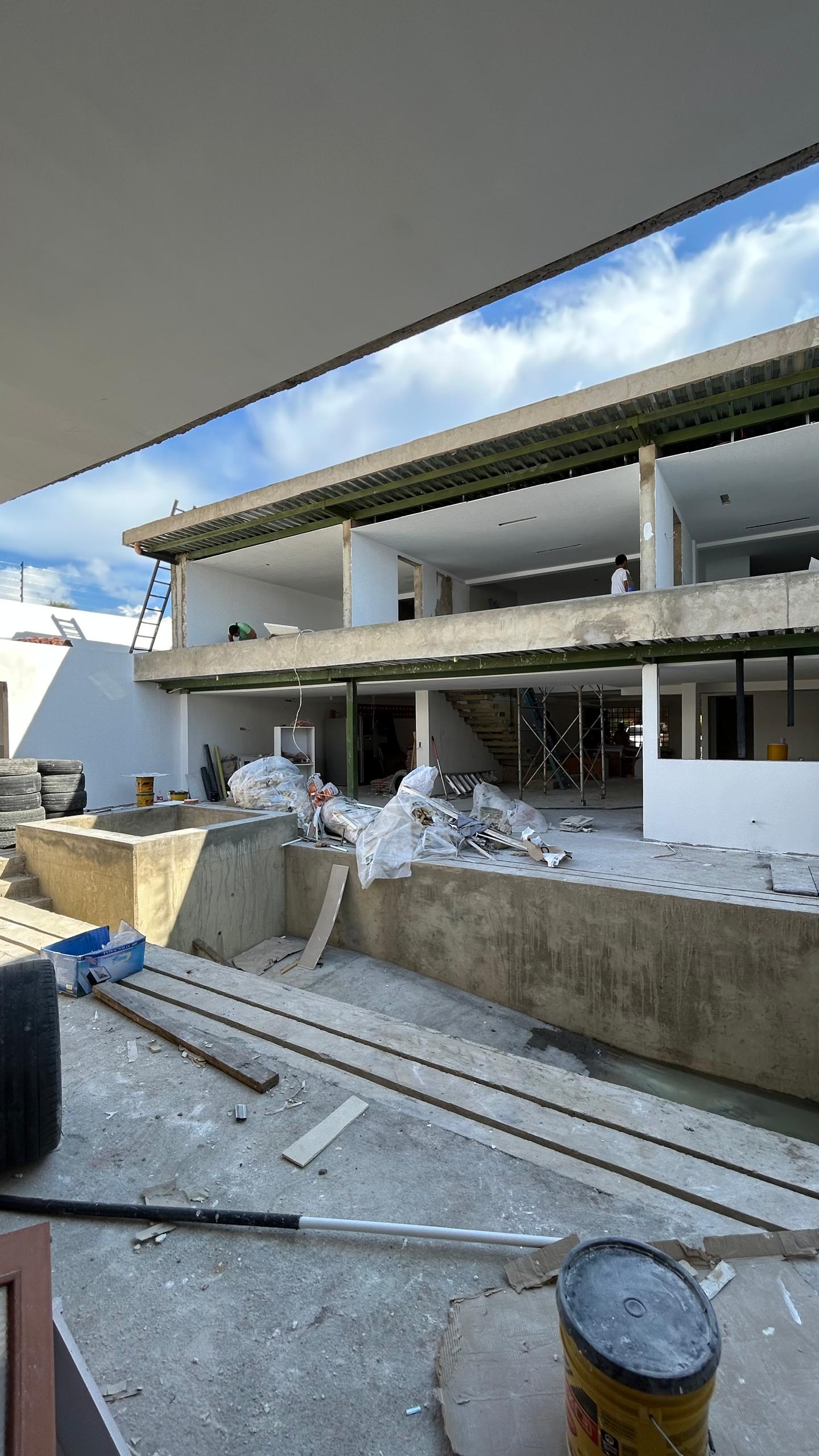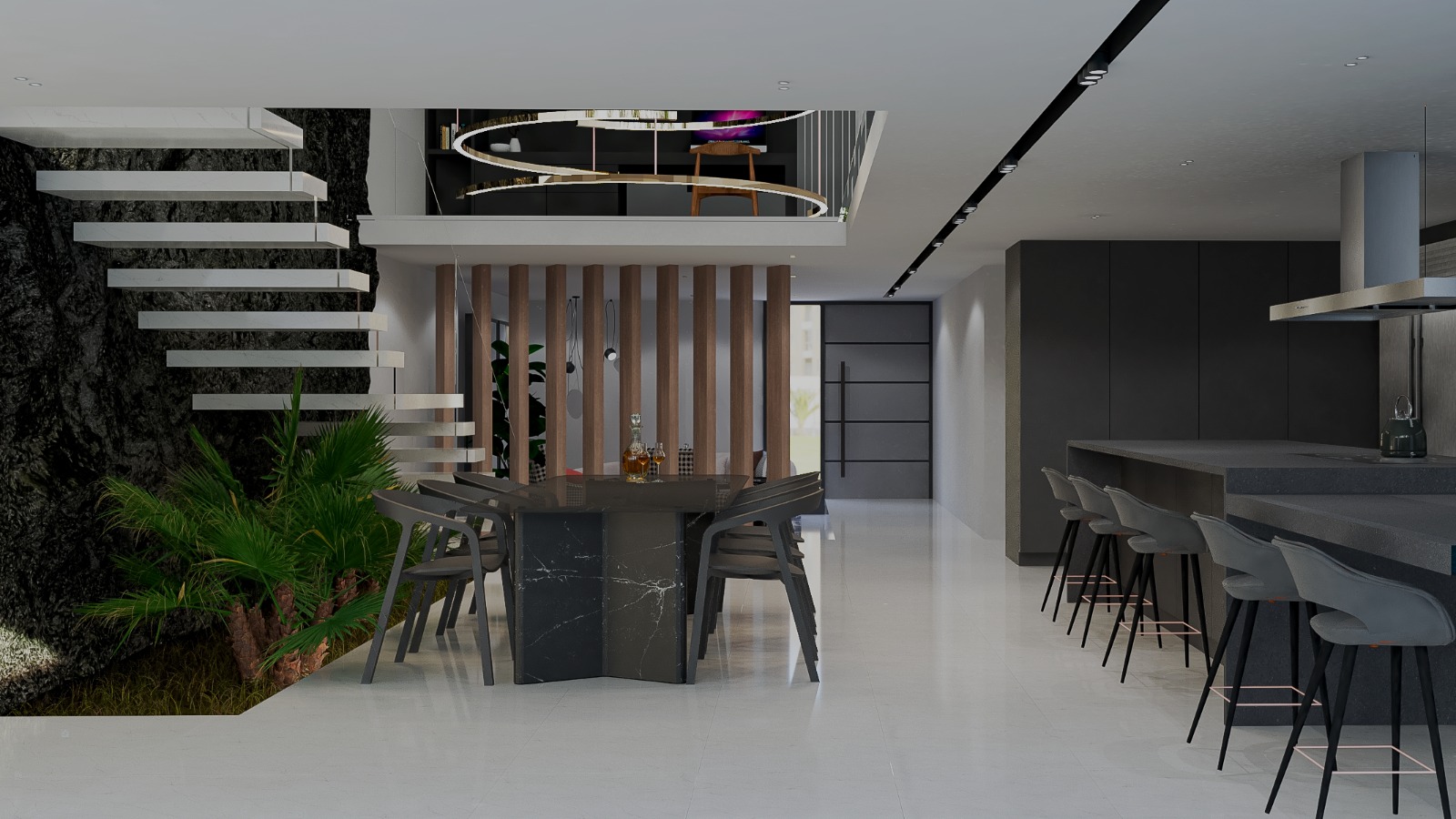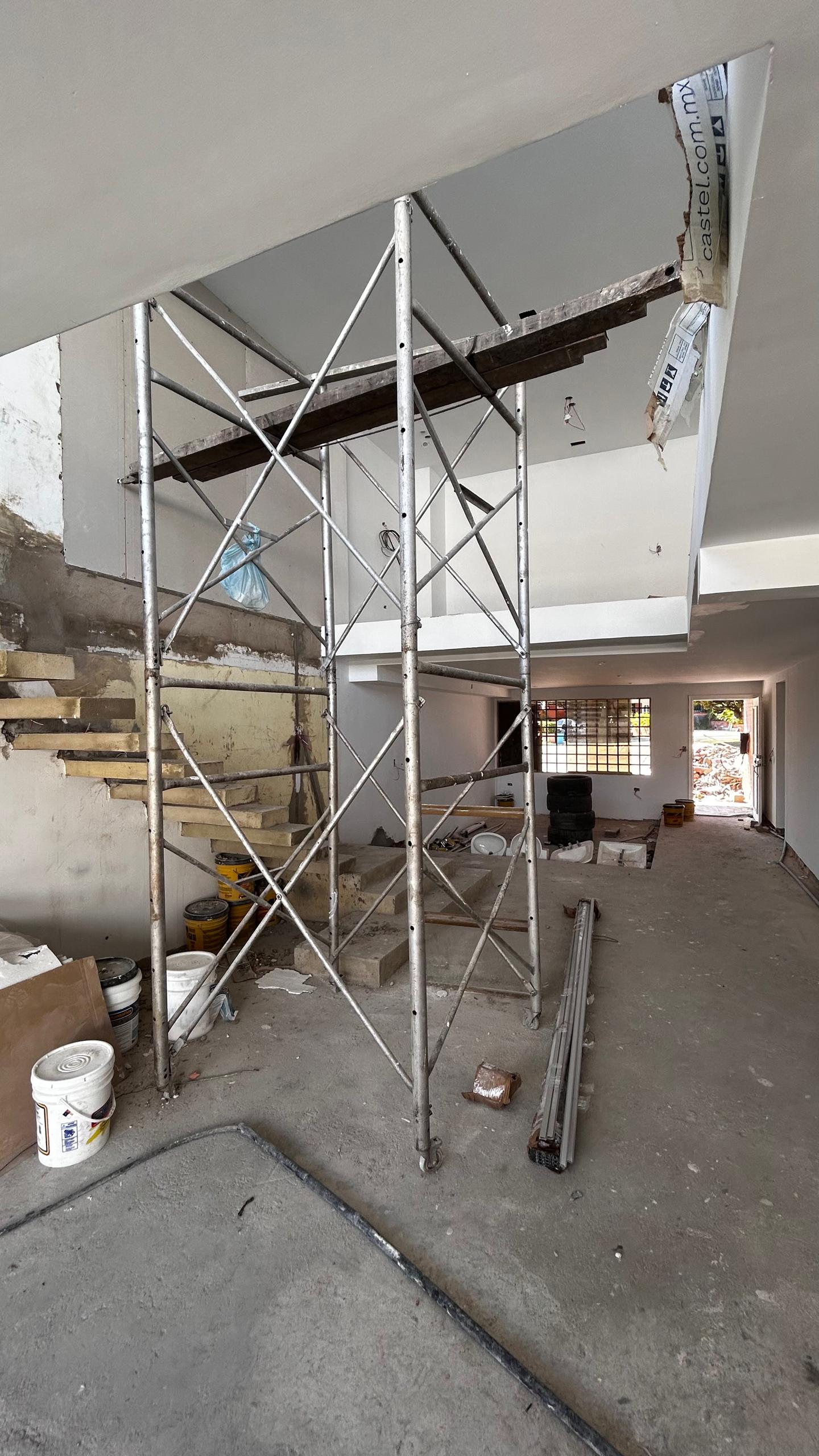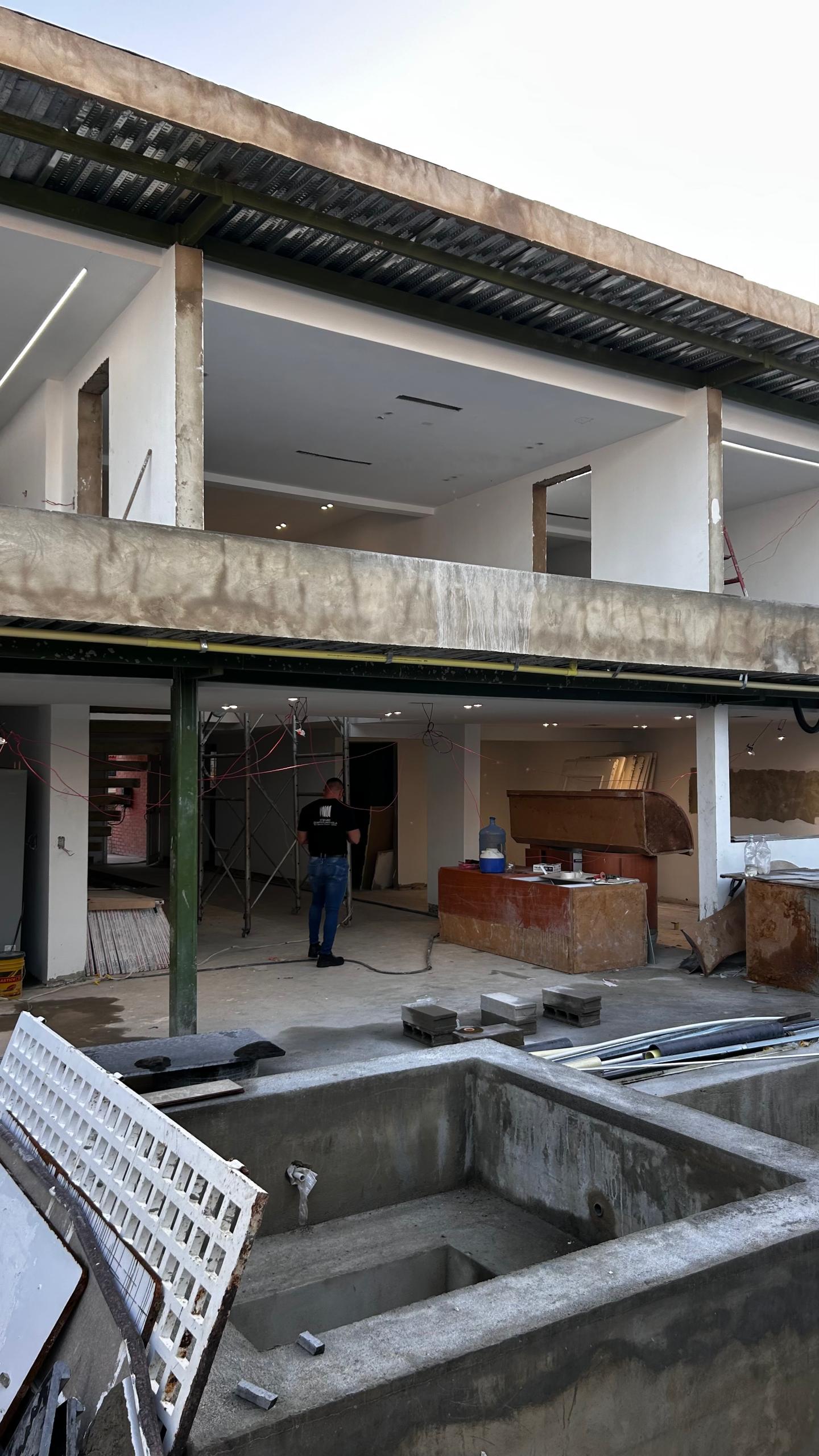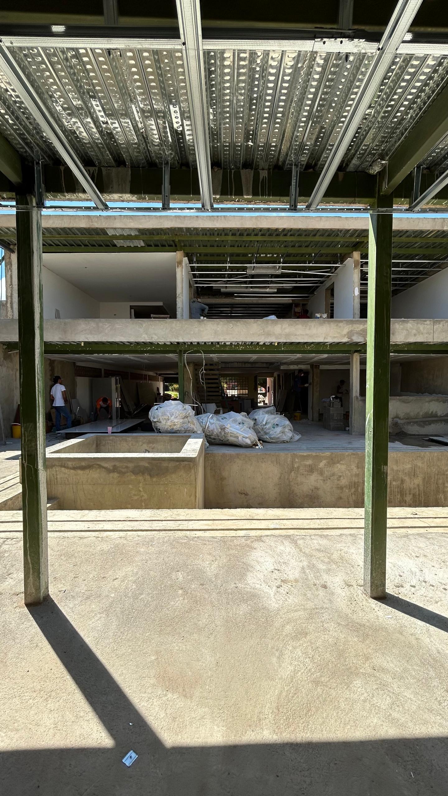 La intervención más ambiciosa fue la creación del vacío central. Para lograr la escala monumental que el cliente exigía, ejecutamos la remoción técnica y controlada de la losa de entrepiso original. Este proceso no fue una simple demolición, sino una reingeniería de cargas que permitió liberar el espacio vertical, creando una doble altura que es el eje del proyecto, también diseñamos y construimos una piscina que actúa como el núcleo de atracción visual de la casa, lejos de ser un elemento estándar, la piscina se integró como una extensión de la arquitectura moderna de la casa. Aplicamos revestimientos y acabados que resaltan la pureza de las líneas arquitectónicas. El uso de tonos oscuros, lejos de reducir el espacio, enfatiza la profundidad lograda con la doble altura, creando una atmósfera de sobriedad. Nos centramos en romper la monotonía del entorno mediante una intervención estructural de alto impacto, elevando la vivienda a una categoría de diseño de autor única en su zona.